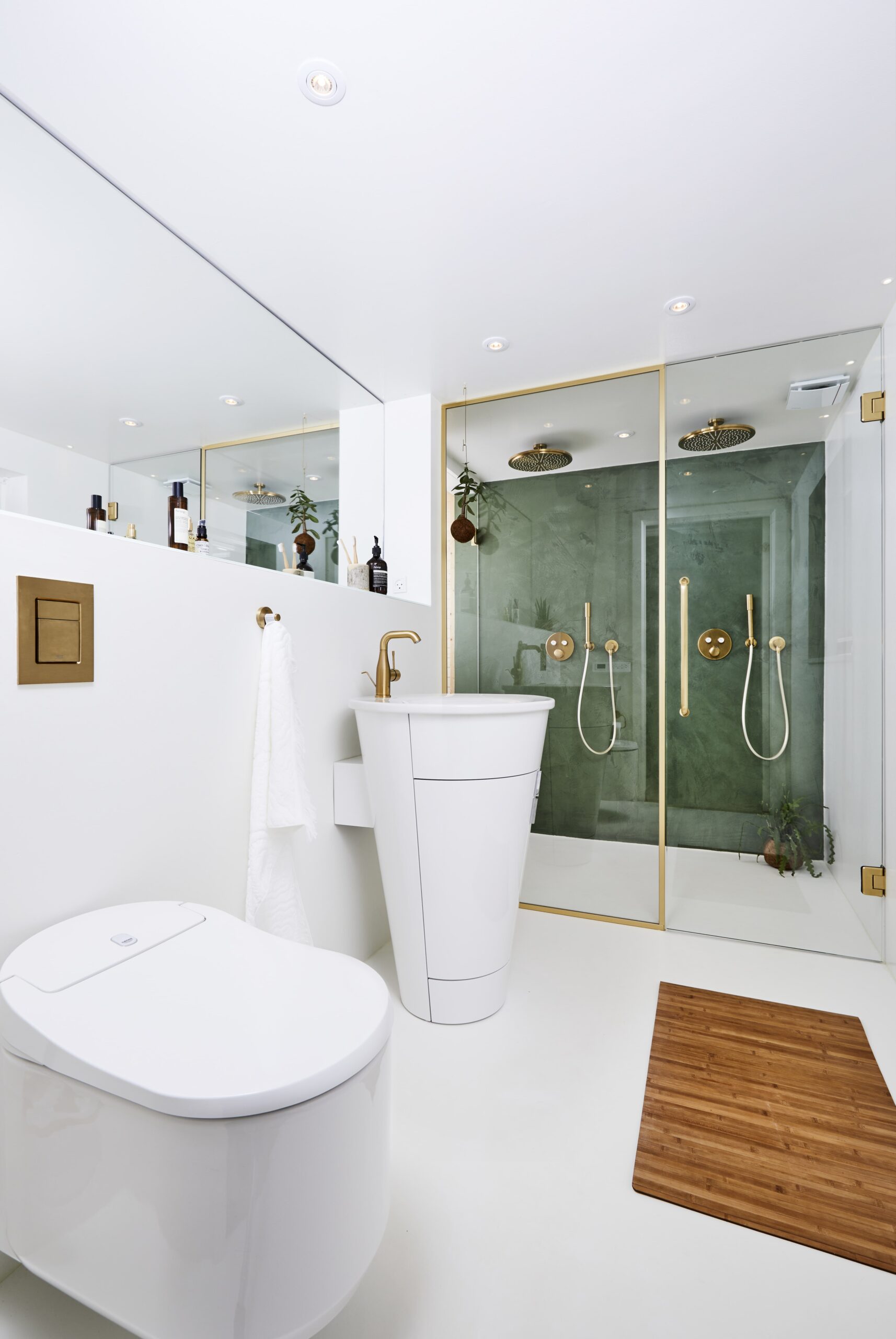 Da et par vendte hjem til Ebeltoft efter år i Singapore, tog de varmen fra de eksotiske klimaer med sig og omskabte deres badeværelse. Med Grohe armaturer og toilet, en Duravit håndvask og en elegant sauna, fik de skabt et unikt rum. Messingdetaljerne, den grønne brusevæg fra Grohe og saunaen fra Saga Trim med særligt træ og belysning tilfører rummet en autentisk, tropisk følelse.